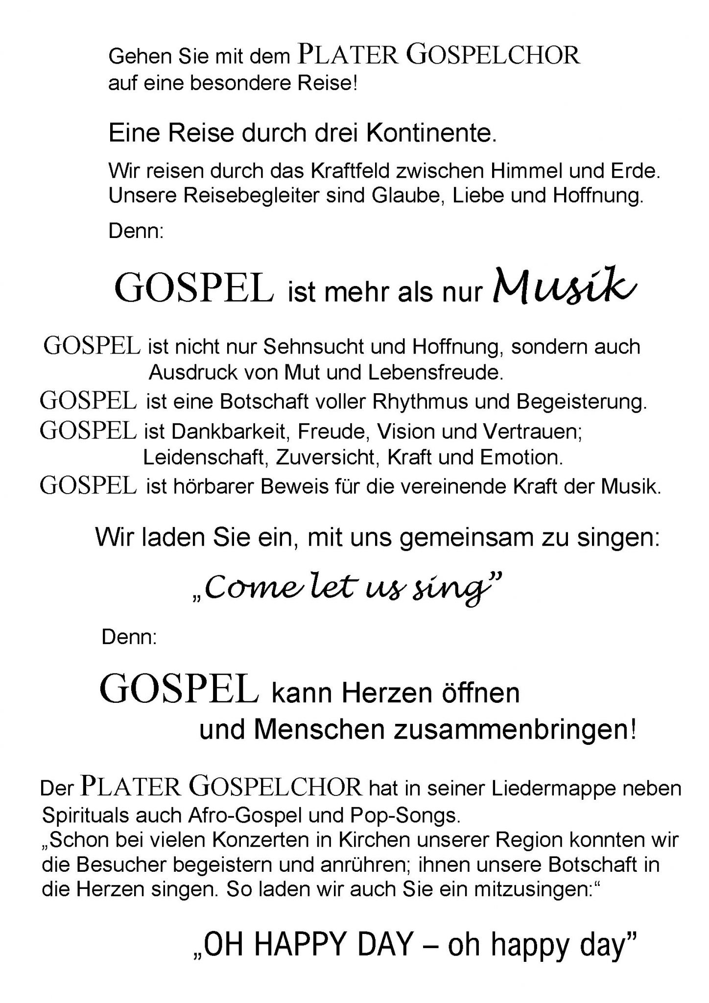 Besuchen Sie doch einmal eines unserer nächsten Konzerte und tauchen Sie ein in die Welt des Gospels!